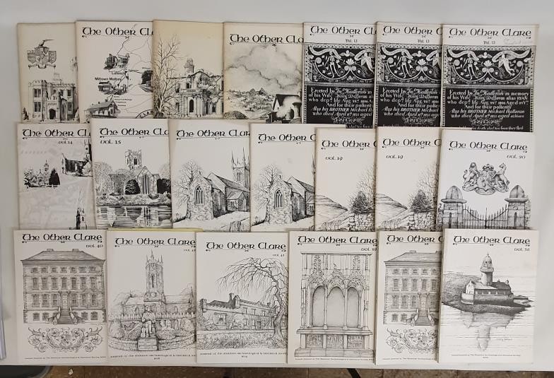 County Clare interest. 10 issues of The Other Clare, the county’s premier historical journal. No 8/9/10/11/13 (3 issues)/14/15/16 (2 issues)/19 (2 issues)/20/23/24/25/30/32 (2 issues)/35/36/39/40 (2 issues)/42/43 plus Indes Volumes 11 to 20. ( 28 issues, some duplicates)