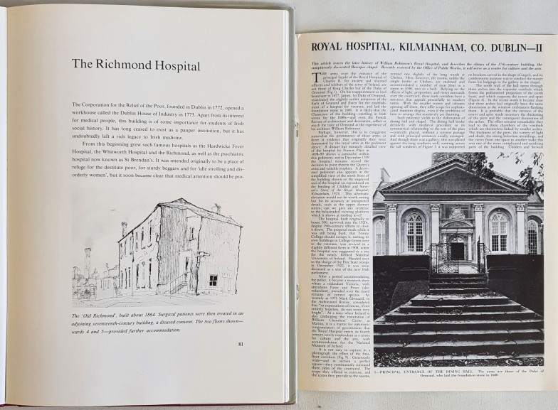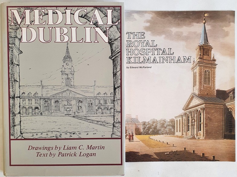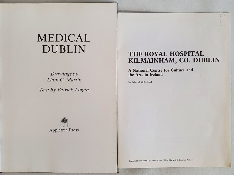 P. Logan. Medical Dublin. 1984. 1st. Folio. Numerous drawings of hospitals. Fine pictorial d.j. Mint and Edward McParland. The Royal Hospital, Kilmainham. 1985. Folio. Pictorial wrappers (2)
