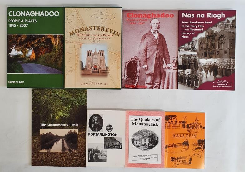 Kildare: Nás na Ríogh-From Poorhouse Road to the Fairy Flax published by Naas Local History Group, 2001; Monasterevin- A parish and its People by Geraldine Carville, 1999, Slipcased plus 6 others (8)