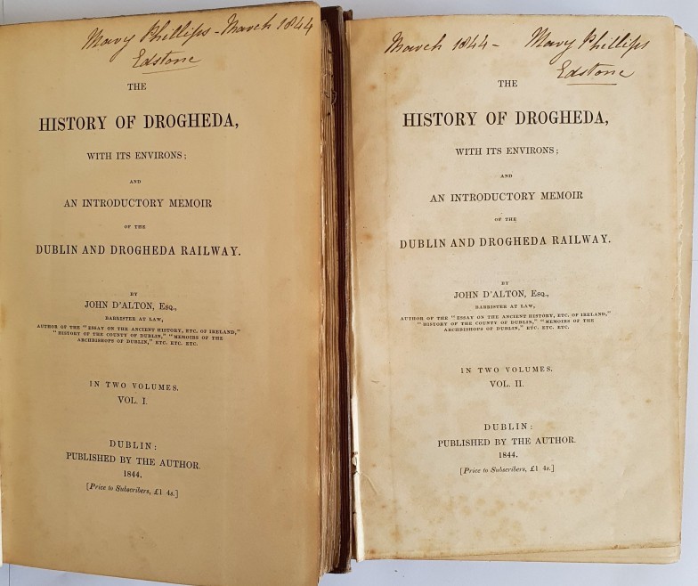 John D'alton. The History of Drogheda with its environs and introductory memoir of the Dublin and Drogheda Railway, 1844 Vol 1-2