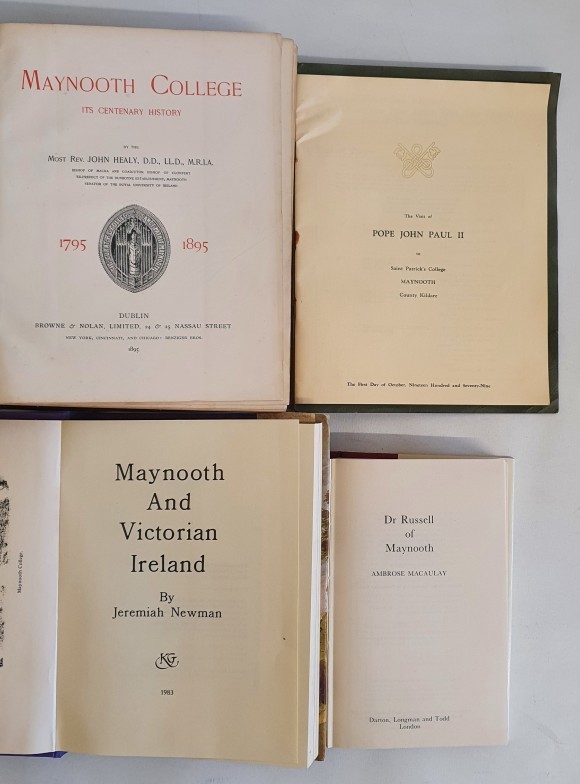 Maynooth College: The Visit of Pope John Paul II to Maynooth College, booklet contining A Vigil of Prayer and Adoration and the Celebration of the Eucharist with his Holiness; Maynooth College-its centanary history by Rev John Healy, 1895, green cloth cover with Maynooth College logo; Maynooth and Victorian Ireland by Jeremiah Newman, 1983; Dr Russell of Maynooth by Ambrose Macaulay, 1983 (4)