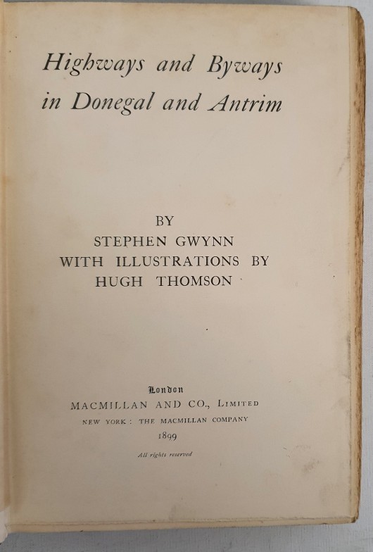 Highways and Byways in Donegal and Antrim, Stephen Gwynn 1899, MacMillan, New York,HB,Illustrations by Hugh Thomson