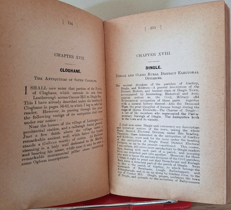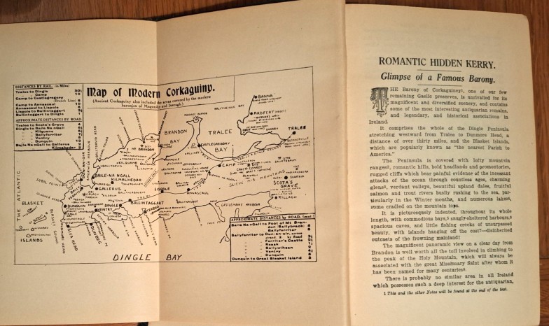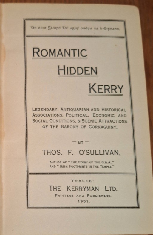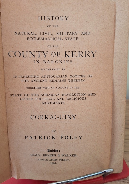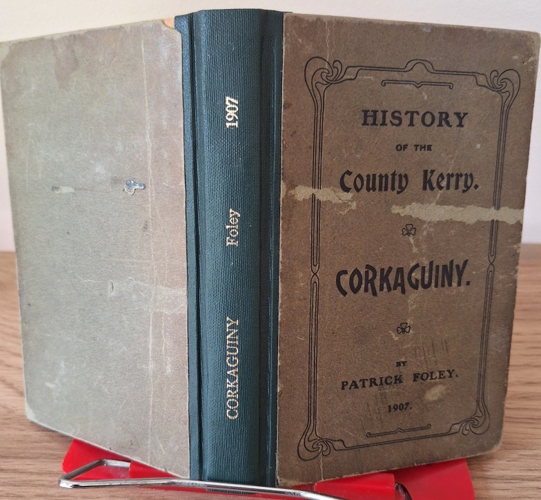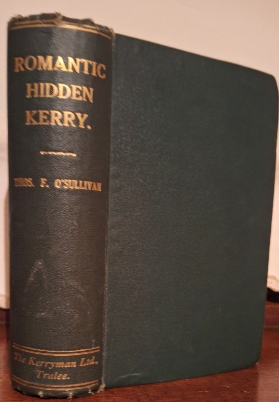 Kerry Interest – two books: Romantic Hidden Kerry – Legendary, Antiquarian and Historical Associations; Political, Economic and Social Conditions, and Scenic Attractions of the Barony of Corkaguiny. (Thomas F. O’Sullivan, The Kerryman, 1931). Frontispiece – Portrait of the Author. Twenty-six illustrations including Map of Modern Corkaguiny. Also, History of the County Kerry – The Barony of Corkaguiny (Patrick Foley, 1907). Original boards – later back-strip and endpapers. Title page present but detached