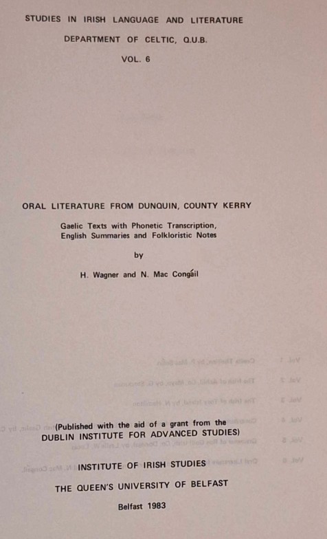 West Kerry Interest – Three Books: Corca Dhuibhne – Dingle Peninsula Archaeological Survey (Judith Cuppage, 1986); Oral Literature from Dunquin, Co. Kerry – Gaelic Texts with Phonetic Transcription, English Summaries and Folkloristic Notes (Wagner & Mac Congáll, 1983): Dúthaigh Duibneach (Breandán Mac Gearailt, 2004 – Biographical notes on many of the residents of the West Kerry Gaeltacht. Text in Irish and English. Photos by Mike Shaughnessy);