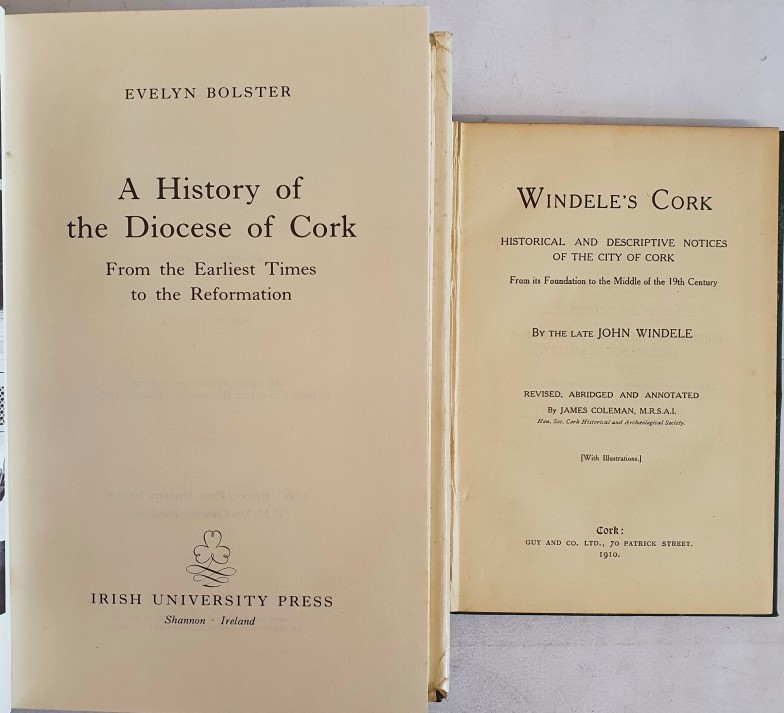 Windele’s Cork. Historical and Descriptive Notices of the City of Cork by the Late John Windele. Revised and annotated by James Coleman. Cork. 1910. Embossed cloth and History of the Diocese of Cork from earliest times to Reformation by Bolster. IUP. 1972 in dj. 2 books