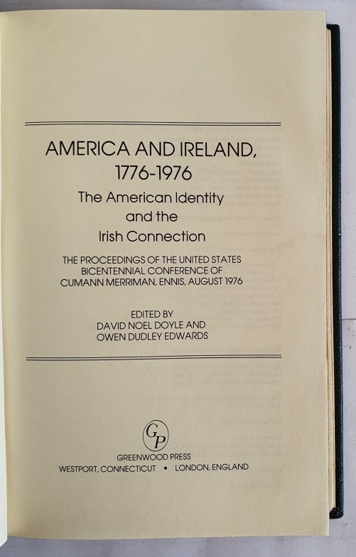 America and Ireland, 1776-1976: The American Identity and the Irish Connection : The Proceedings of the United States Bicentennial Conference of Cum Owen D. Edwards Published by Greenwood Press, 1980, 1st Ed. Gilt lettering and design. Slip cased