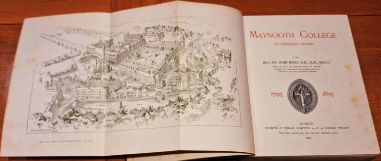 Maynooth University and Armagh Archive: Maynooth College – Its Centenary History (Most Rev. John Healy, 1895. Folding frontispiece – A Bird’s Eye View of Maynooth College); The Plants and Grounds of Maynooth College (Bowering, Reilly & Whittaker, 1995); Treasures from the Cardinal Tomás Ó Fiaich Memorial Library & Archive (Colin McKeown ed., 2010)