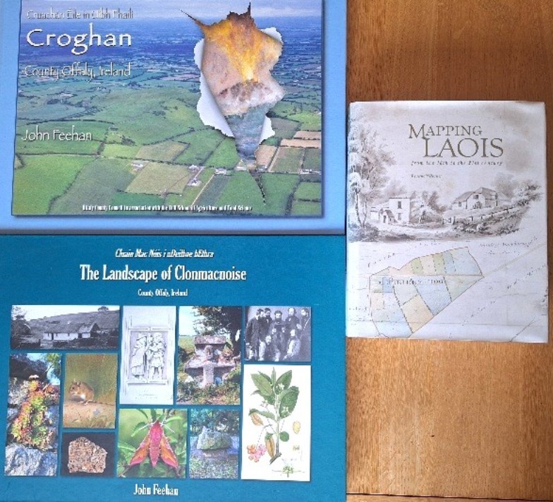 Laois/Offaly Interest: The Landscape of Clonmacnoise (Feehan, 2014); Croghan Co. Offaly (Feehan, 2011); Mapping Laois from the 16th to the 21st Century (Horner, 2018).