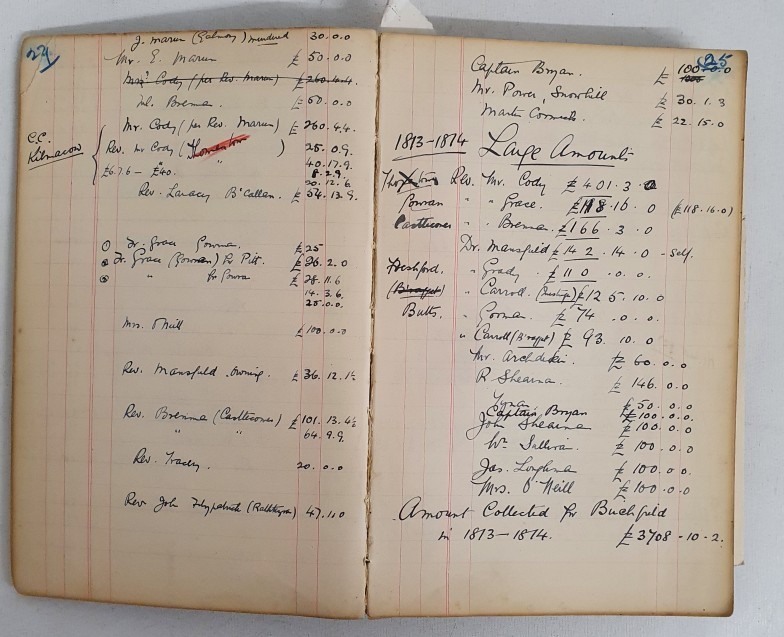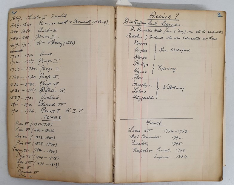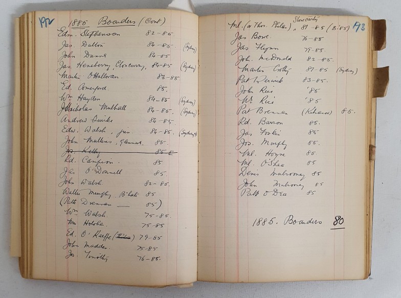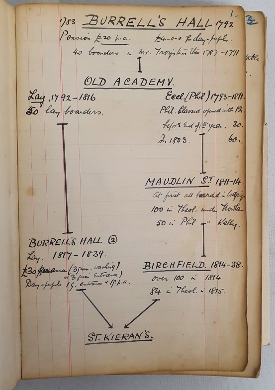 St Kierans College Kilkenny: Manuscript Book Dated 1782-1936. Initials G S on front Board.Listing Student boarders and day students amongst others. A must have for any one with an interest in this renowned College. Unique