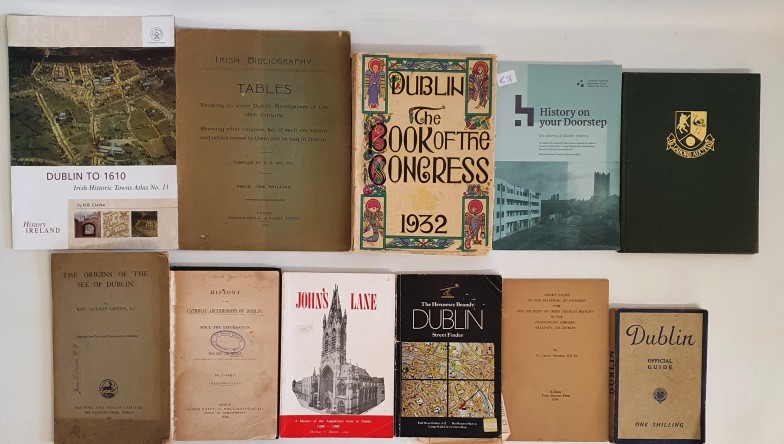 Dublin: Irish Bibliography. Tables relating to some Dublin Newspapers of the 18th century compiled by E R McC Dix, 1910, back board detached; The Hennessy Brandy Dublin Street Finder c 1960's; Dublin Official Guide c 1950's; Dublin The Book of Congress 1932; The Rise of a Merchant Bank-a short history of Guinness Mahon by Ivy Frances Jones, 1974 plus 6 others (10)