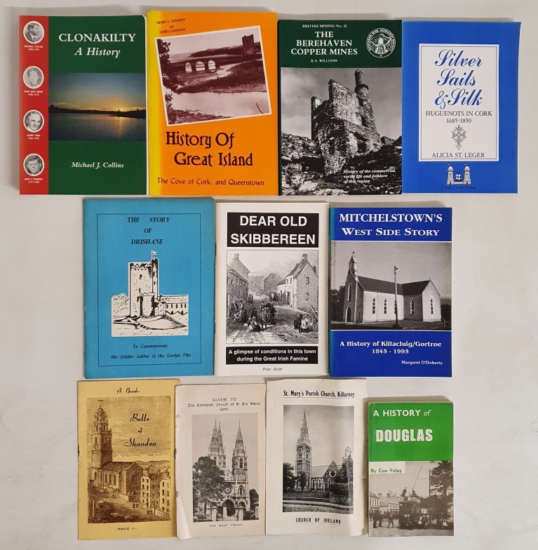Cork: Silver, Sails & Silk-Huguenots in Cork by Alicia St Leger, 1991; Clonakilty-A History by Michael J Collins, 1999; Mitchelstown's West Side Story- a history of Killacluig/Gortroe 1845-1995 by Margaret O'Doherty plus 8 others (11)