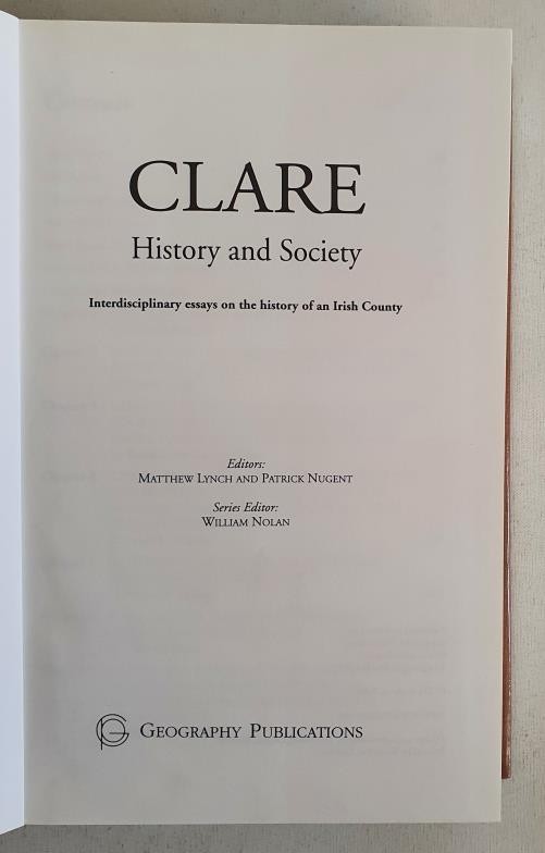Clare: History & Society edited by Matthew Lynch and Patrick Nugent. Geography Publications. 200. Dj. 2008. 28 Chapters, 789 Pages, 95 Plates and 37 Figures in a superbly detailed study