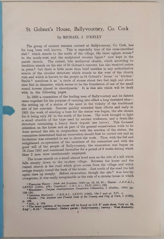 Gobnait Naomhtha Bhaile Mhuirne. St. Gobnait of Ballyvourney. Michael J. O’Kelly & Francoise Henry. 1952. plates, illustrations. wrappers