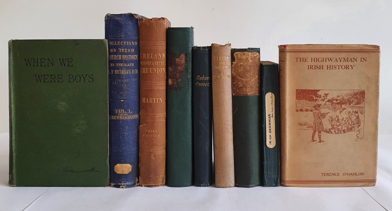 Irish Interest: The College Irish Grammer by Rev Ulick Canon Bourke, 1879; Ireland Before and After the Union with Great Britain by R M Martin, 1847 with folding table plus 7 others (9)