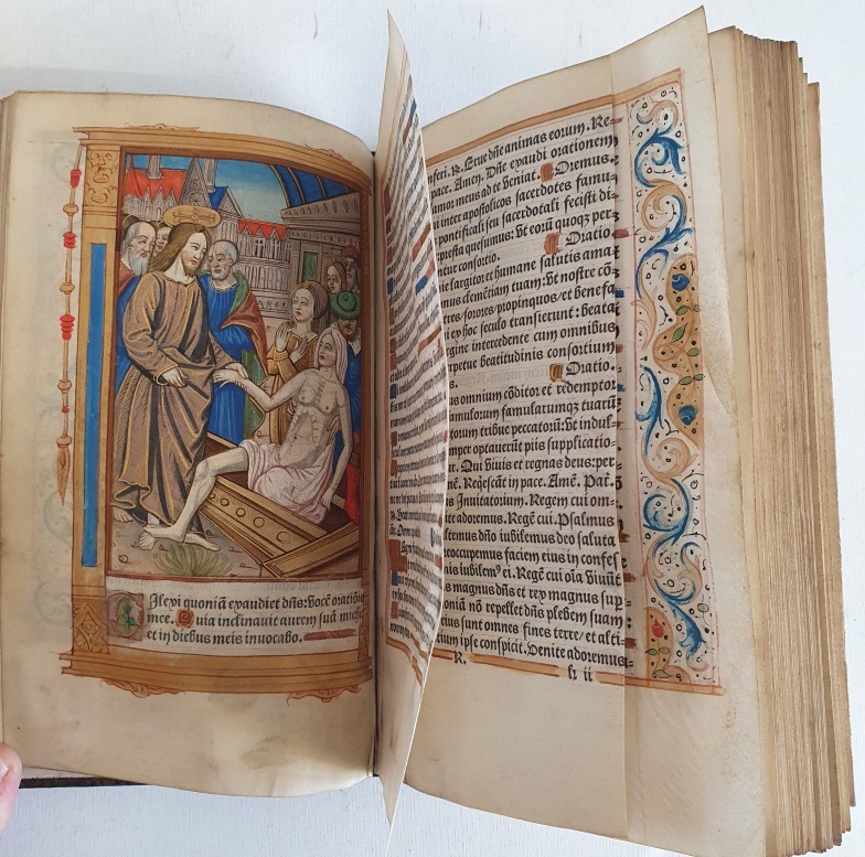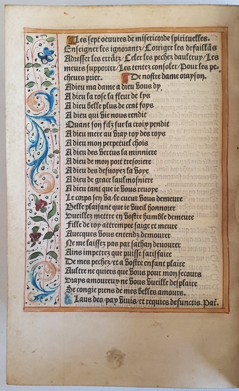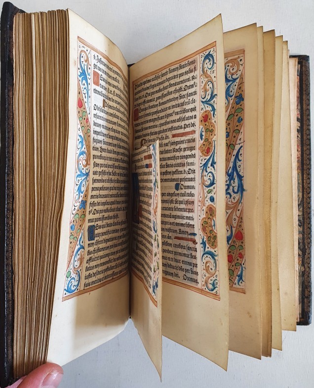 Very Early Printing: Book of Hours: Hours for the Use of Rome - Hours of the Conception of Our Lady and the fifteen prayers of Saint Brigid. In Latin and French, imprint on parchment France (Paris), Philippe Pigouchet bookseller of the said University of Paris for Guillaume Eustace, bookseller, keeping his shop in the Great Hall of the Palace at the Third Pillar. c.1512.