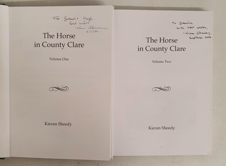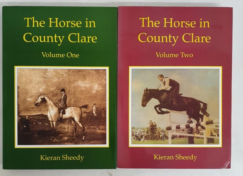 The Horse in County Clare. Sheedy, Kieran BOTH SIGNED: Published by Privately published, 2001/2006. Vol 1-2. The history of the horse in County Clare - including Irish draught horses, horse racing, and fox hunting. Covers the history of racing in the county from the early days at Ardsollus, Ballycoree, Miltown Malbay and Clare Gold Cup. Also with histories of the various hunts in the county. HB, DJ, Fine condition