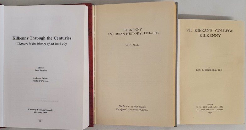 Kilkenny Interest: Saint Kieran's College, Kilkenny by Birch. 1951 in dj; Kilkenny, An Urban History, 1391-1843 by Neely. 1989 in dj. Signed by author and Kilkenny Through the Centuries by Bradley and O’Dwyer. 2009 in dj. 3 books