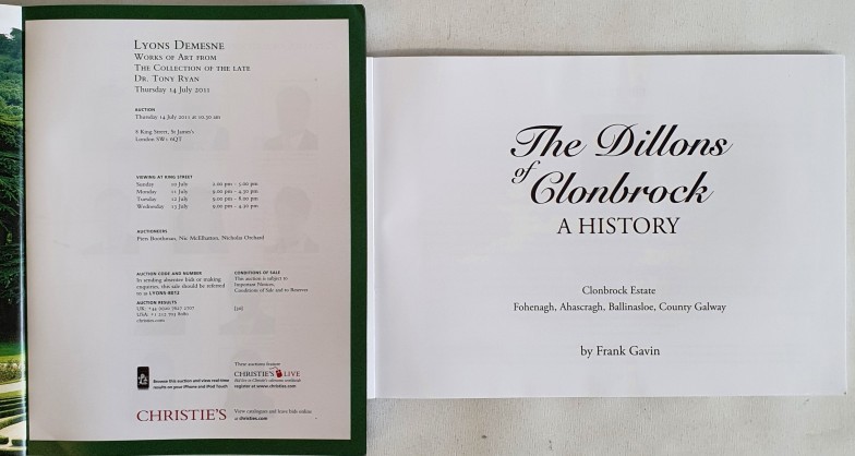 Christies auction catalogue "Works of Art" from the collection of Dr. Tony Ryan, Lyons Demesne on 14th July 2011. Beautiful colour plate catalogue and F. Gavin. The Dillons, Clonbrock, Co. Galway - A History 2023. 1st. Oblong quarto . Illustrated (2)