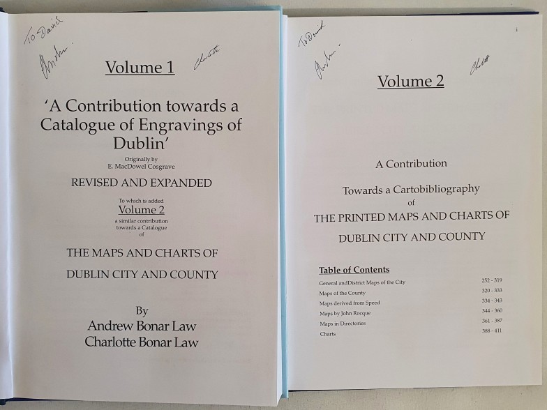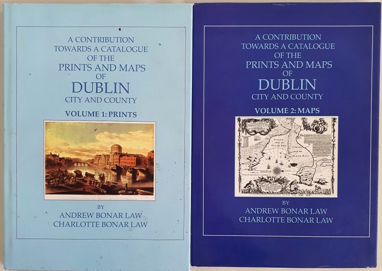 A Contribution towards a Catalogue of the Prints and Maps of Dublin City and County. Volume 1: Prints. Volume 2: Maps. Bonar Law, Andrew & Charlotte. Published by Shankill Castle, Co. Dublin, The Neptune., 2005. 208/500.(2) SIGNED by Charlotte