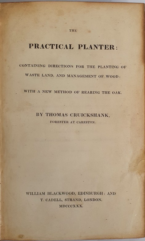 Thomas Crookshank. The Practical Planter containing directions for the planting of waste lands and Management of Woods. 1st. Text illustrations. Very fine contemporary half calf, gilt spine. Raised bands