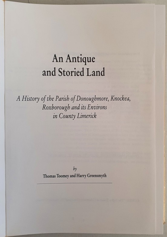 An antique and storied land: history of Parish of Donoughmore, Knockea, Roxborough and environs in County Limerick by Thomas Toomey and Greensmyth. 1991. Number 319 of limited edition of 400 copies. excellent copy in dj.