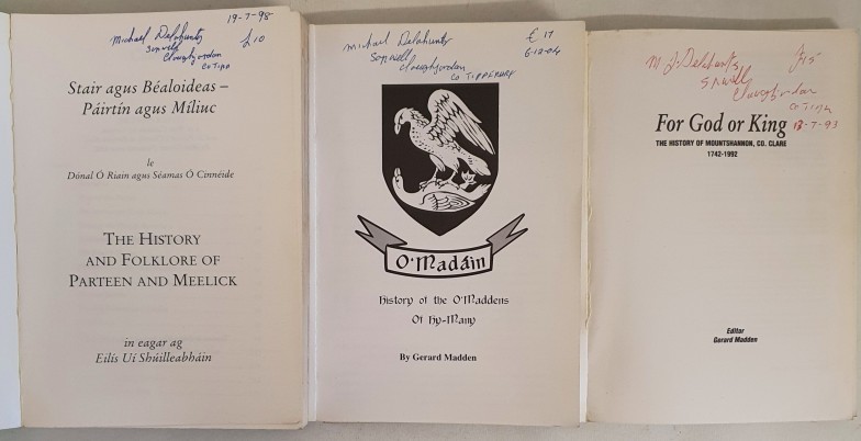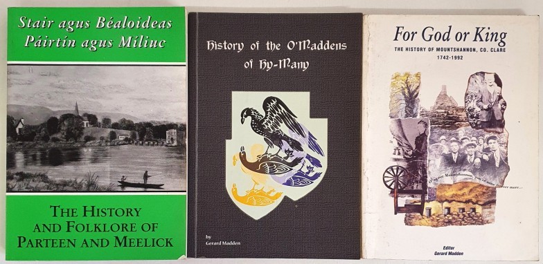 History of the O’Maddens of Hy-Many by Madden; For God or King . history of Mountshannon 1742-1992 and The History and Folklore of Parten and Meelick by O’Riain. 3 detailed histories.