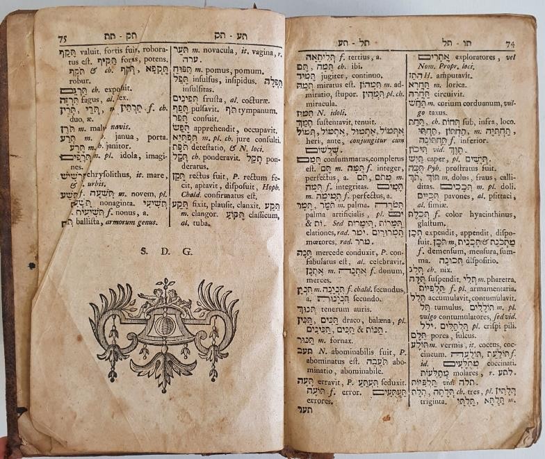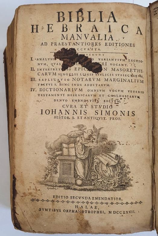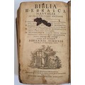 Johann Simonis. Biblia Hebraica Muaualia. Secone, amended edition, published in Halle by Orphanotrophei in 1676. Simonis was a professor of History and Antiquity, known for his work in Oriental linguistic research. Full calf, 12mo.