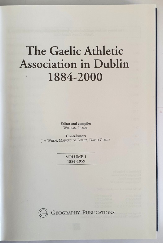 The Gaelic Athletic Association in Dublin 1884-2000. Editor and compiler: William Nolan, Contributors: Jim Wren, Marcus de Búrca, David Gorry (2005) 160 x 240 mm, 3 volumes in hardback in slipcase, c.1500 pages, 360 photographs