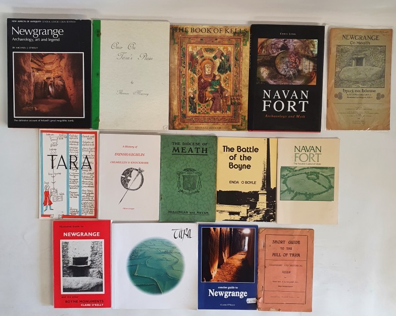 Meath: A Penny Guide to Newgrange" (1929): Written by R. A. S. Macalister with illustrations by H. G. Leask; The Battle of the Boyne by Enda O' Boyle, 1990; Navan Fort- Archaeology and Myth by Chris Lynn, 2003; Short Guide to the Hill Of Tara- Legendary and Historical Review by Rev R R Callary, 1952 plus 10 others (14)
