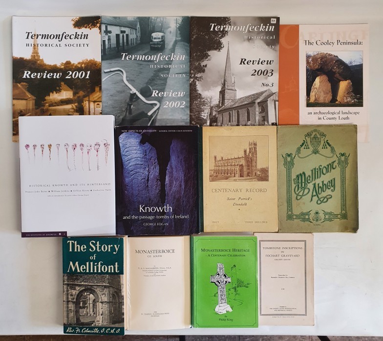 Louth: Tombstone Inscriptions in Fochart Graveyard translated by Rev D Mac Iomhair, 1967; The Story of Mellifont by Rev Colmcille, 1958; Hitorical Knowth and its Hinterland edited by F J Byrne et al plus 9 others (12)
