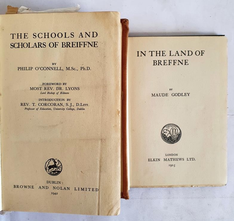 Breiffne: O'Connell (Philip) The Schools and Scholars of Breiffne, Dublin 1942. First Edn., port. plts. & fold. maps; IN THE LAND OF BREFFNE. GODLEY, Maude. Published by Elkin Mathews,, London,, 1925 (2)